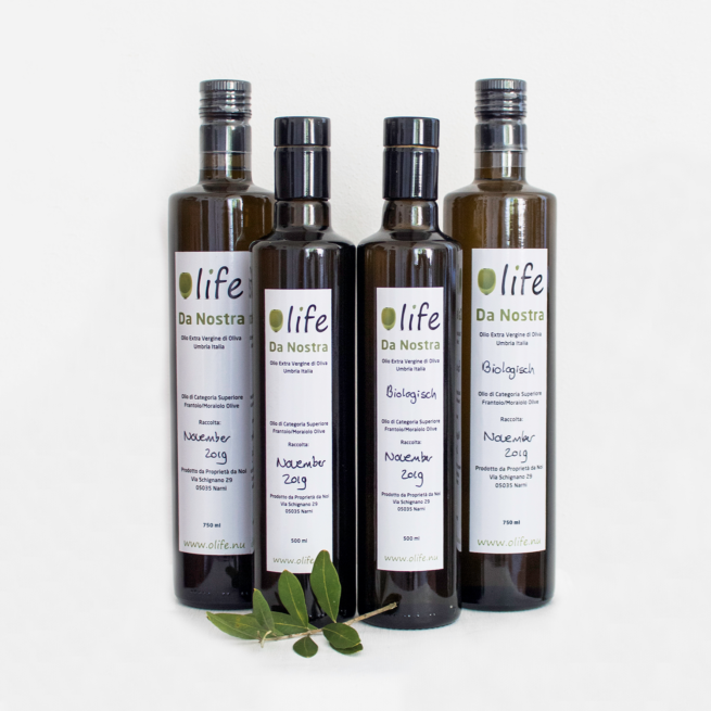 Da Nostra Extra Vergine Olijfolie is gemaakt van een blend van Frantoio-olijven en Moraiolo-olijven. De smaak van Da Nostra Olijfolie is zacht, romig en licht peperig. Deze olijfolie blijft goed overeind bij kruidige gerechten, pastagerechten en diverse vleessoorten met een sterkere smaak. Da Nostra Extra Vergine Olijfolie is ook leverbaar in flessen van 750 ml.